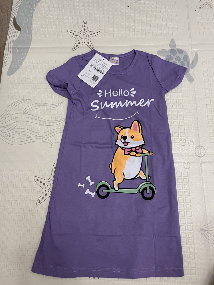 Ночная сорочка для девочки с оригинальным изображением столь полюбившейся собачки породы Корги будет любмым элементом домашней одежды Вашей малышки.